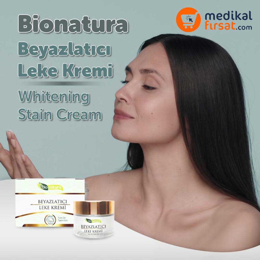BioNatura Alfa Arbutinli Beyazlatıcı Leke Karşıtı Krem 50 ml, leke görünümünü azaltmaya yardımcı kozmetik bir bakım ürünüdür ve herhangi bir hastalığın tanı, tedavi veya önlenmesi amacıyla kullanılmaz.